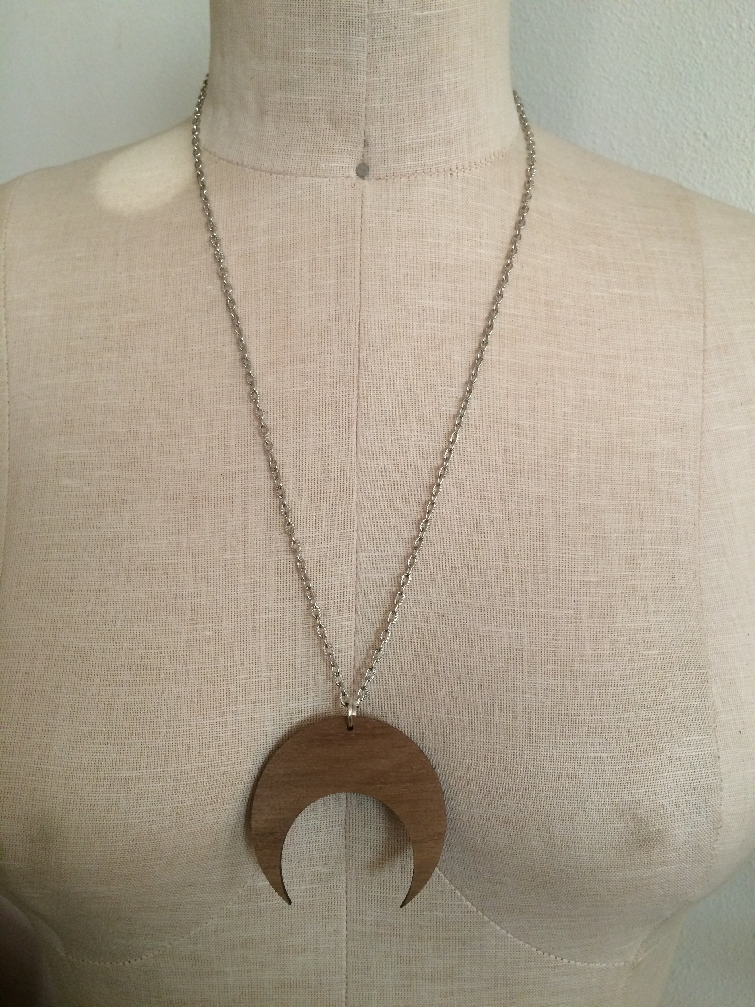 Naja Crescent Moon Necklace (Wood/silver)