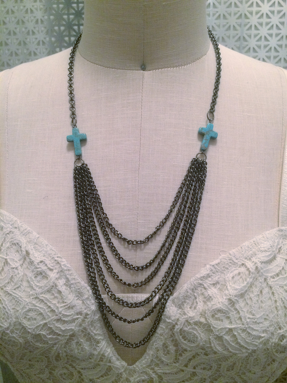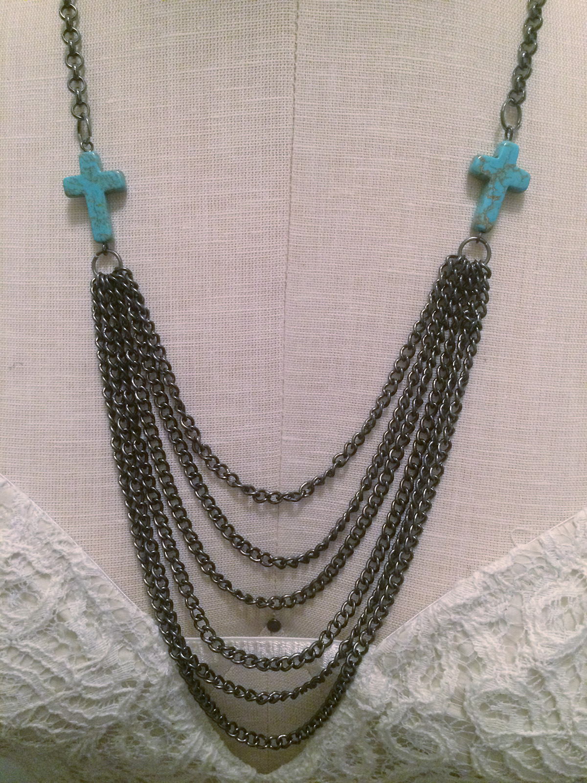 Turquoise Crosses and Chains and Chains of Gunmetal Hardware!