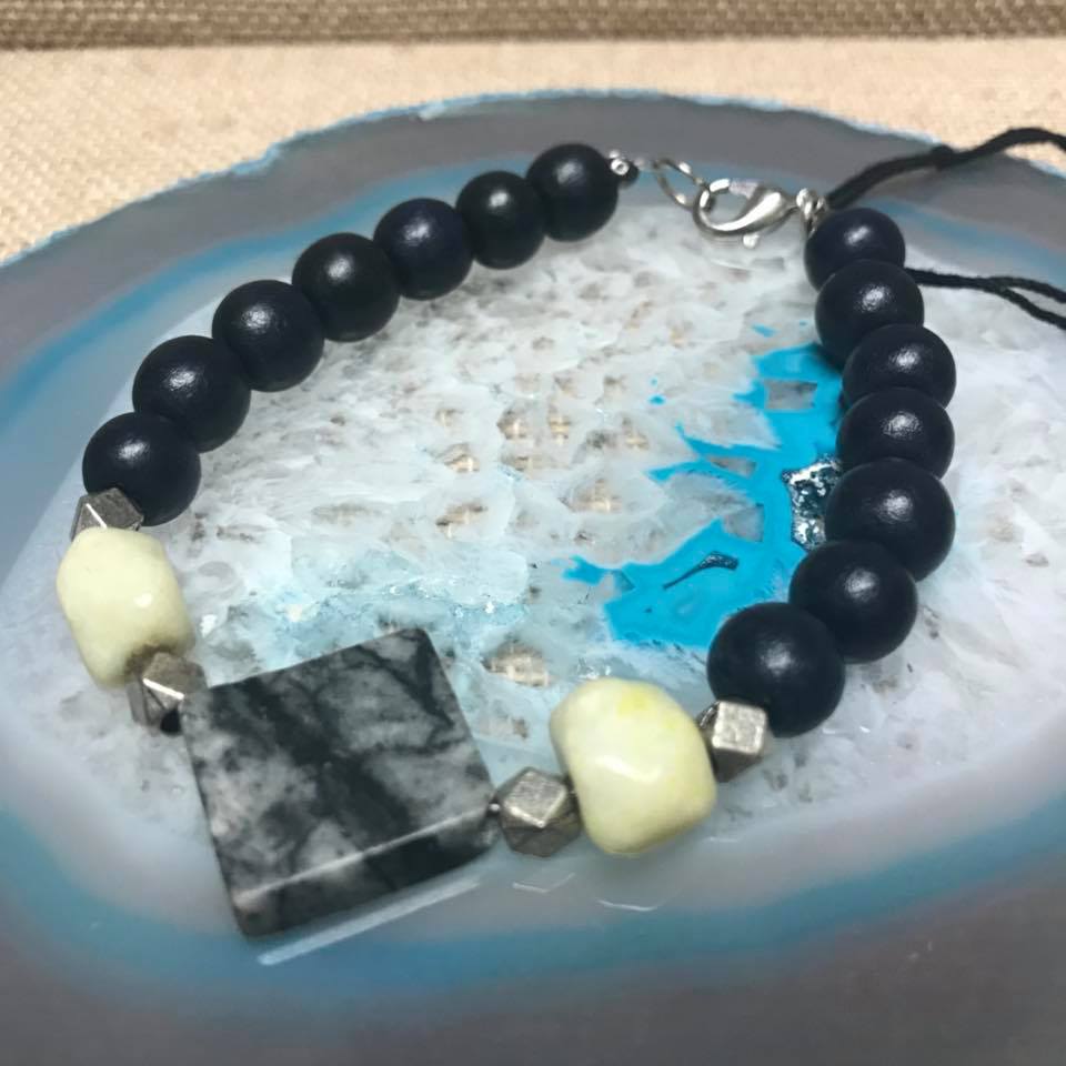 Wild Child Wood/Gemstone Bracelet - Black #4