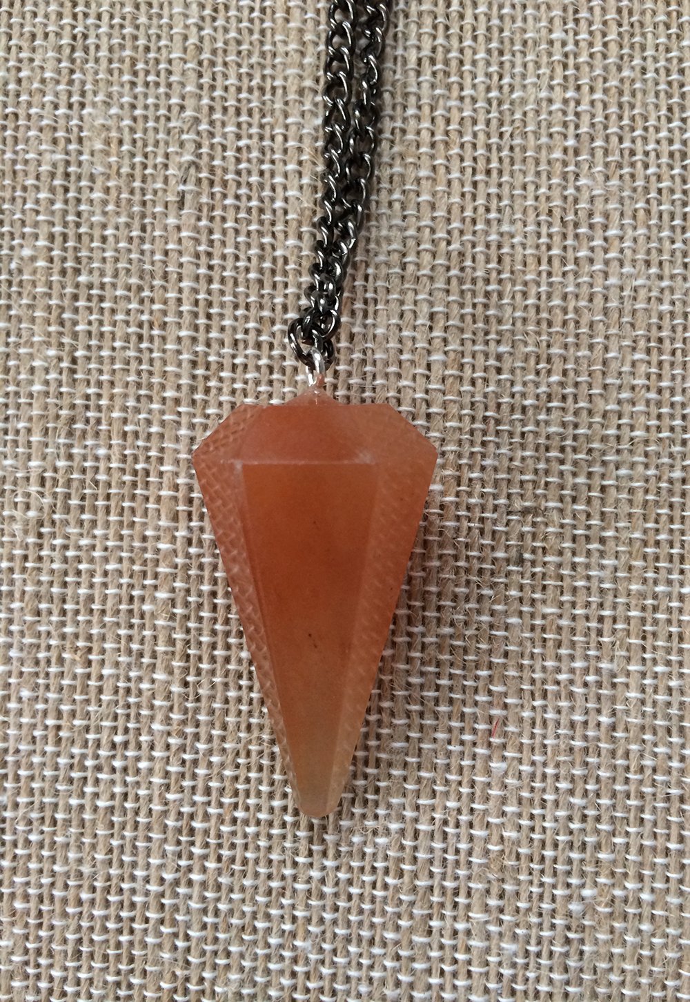 Genuine Orange Aventurine Stone Pendulum Shape Gunmetal Chain Lobster Clasp