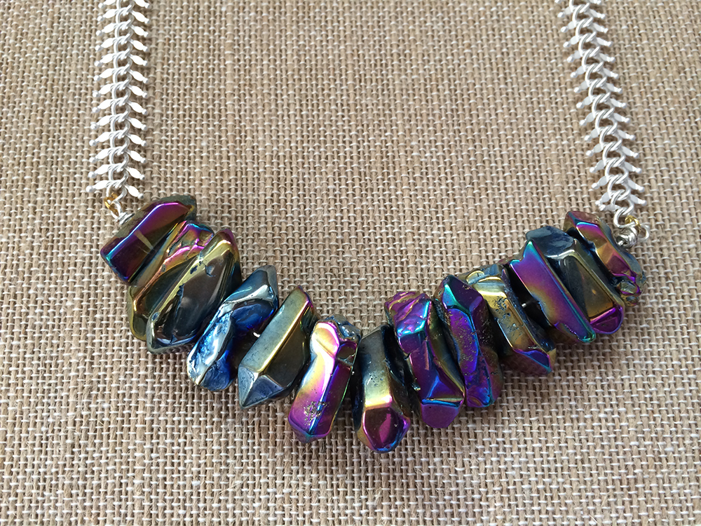 Electroplated Crystal Quartz High Quality Matte Silver Chain