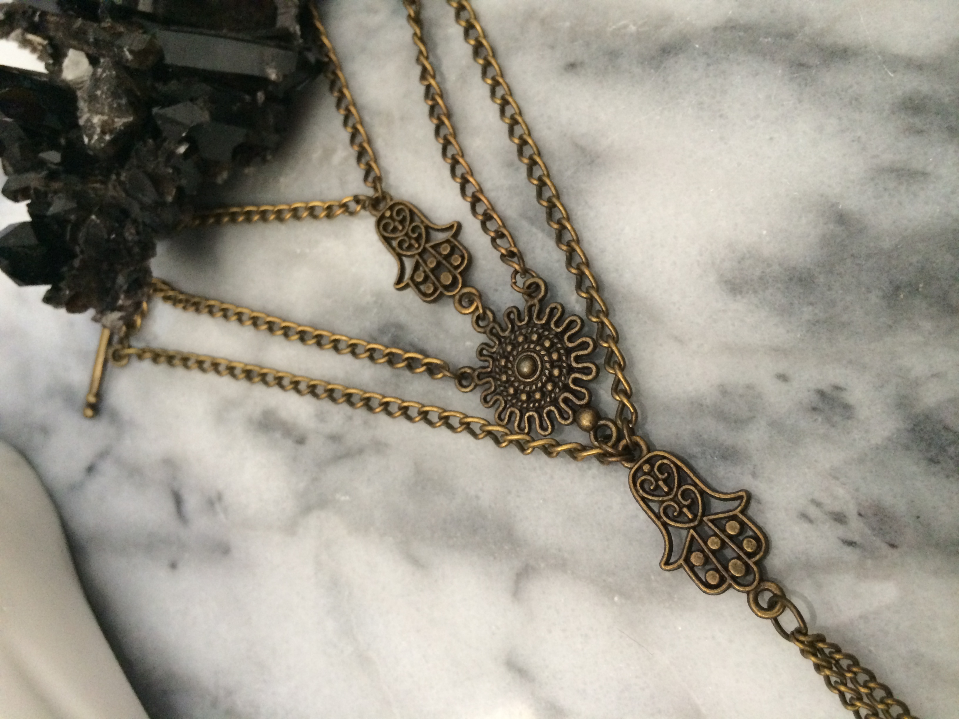 Brass Namaste Hamsa Handchain