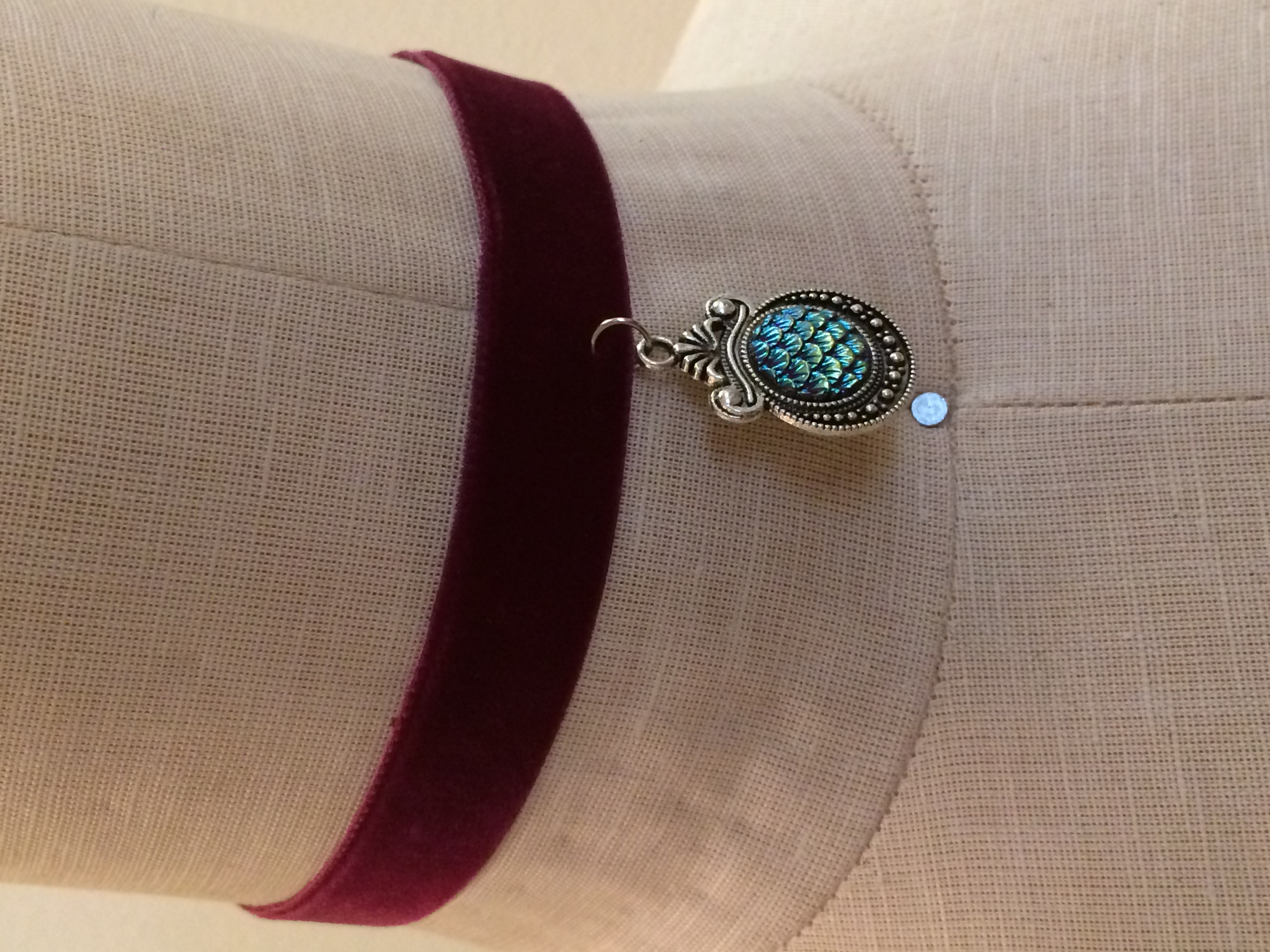 Deep Berry Colored Velvet with Silver Hardware and Mermaid Scale Pendant