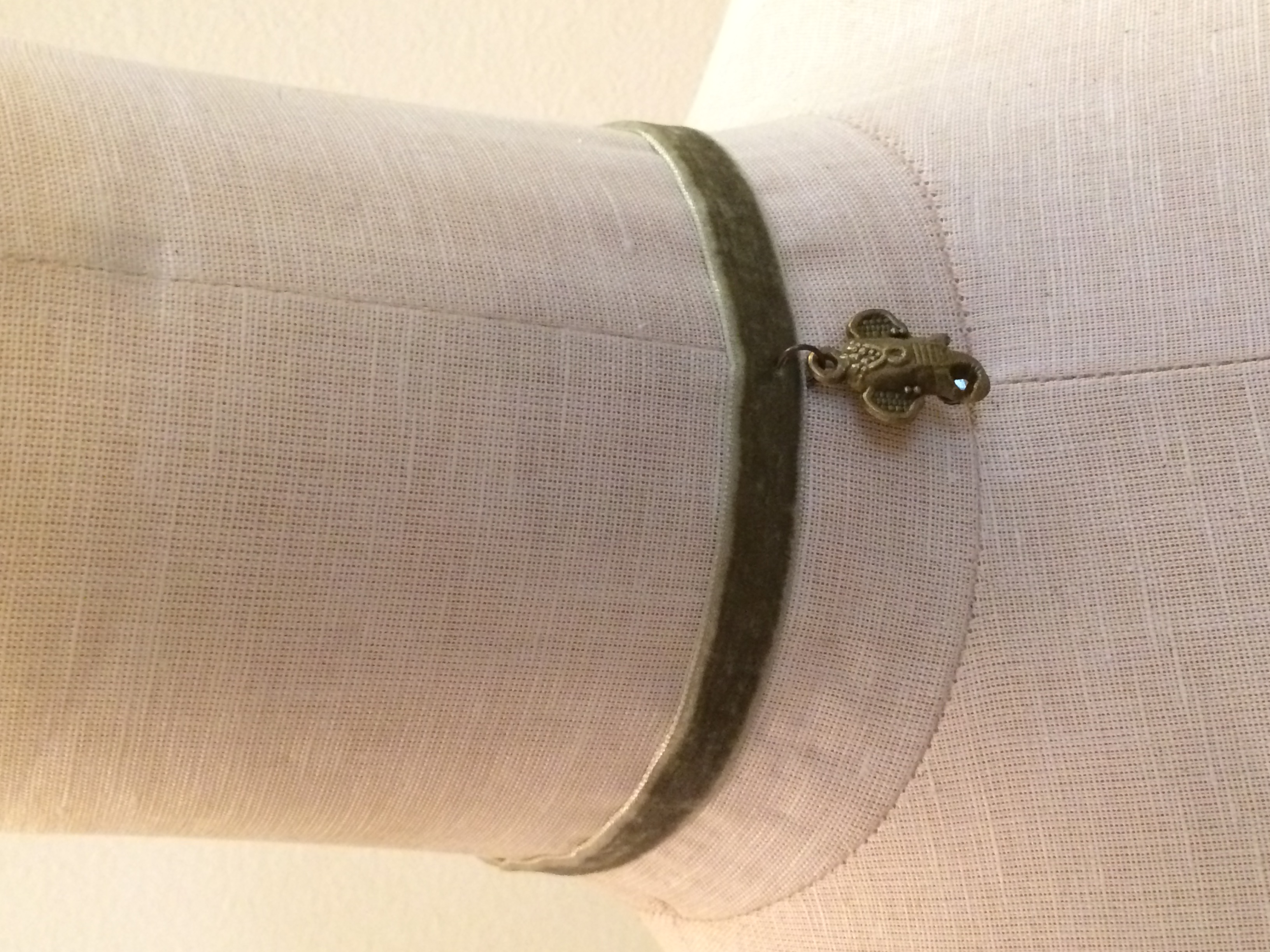 One Size Fits Most. Comes with a 2" Extension to adjust. This Velvet choker doesn't stretch. Rustic Olive Green with Brass Hardware.